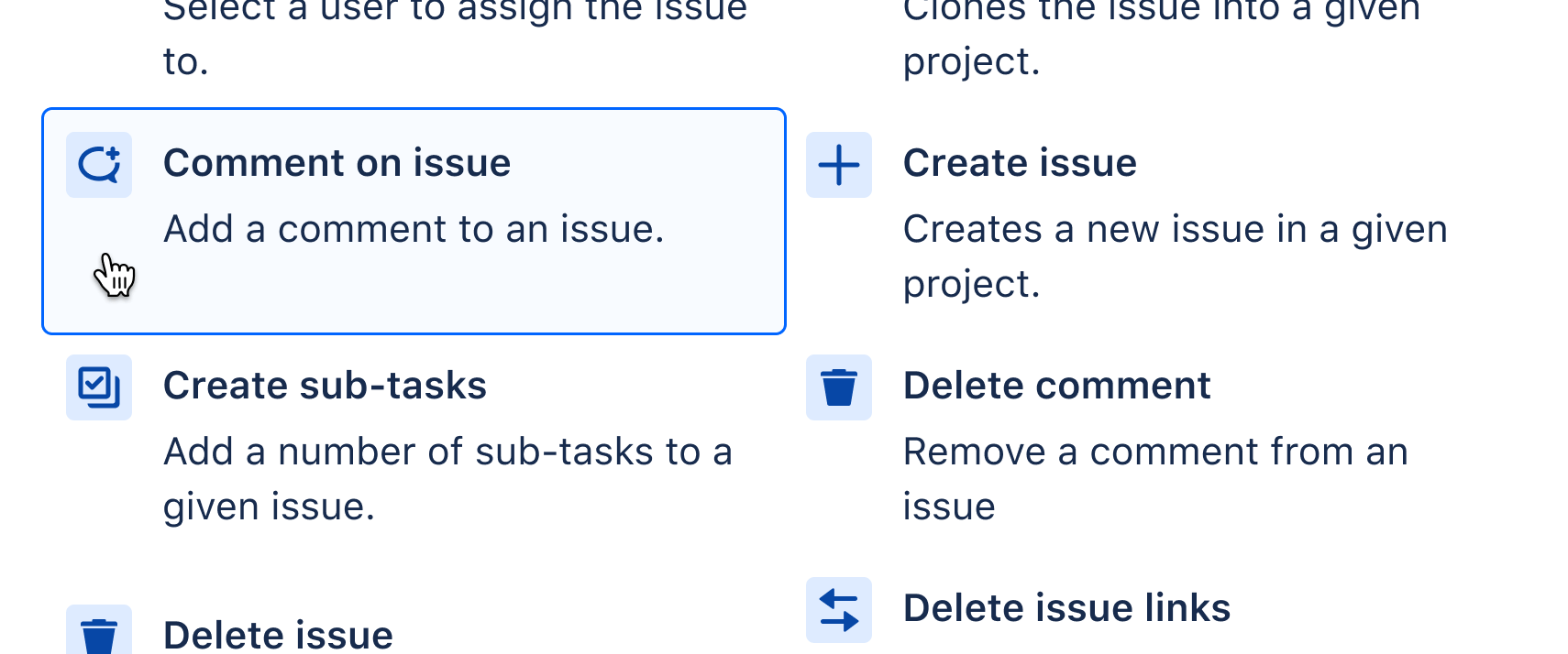 Step 3: Add a comment action to the issue